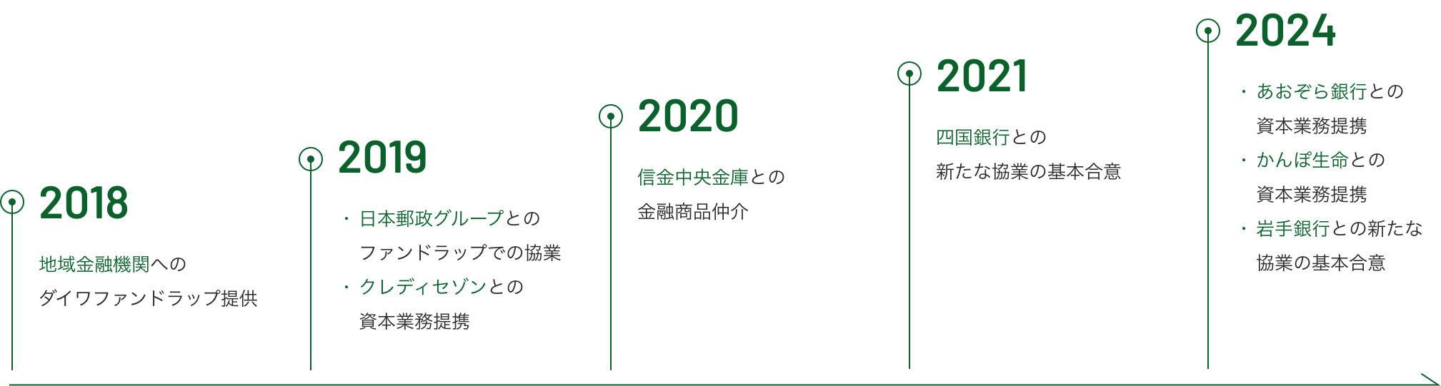 大和証券グループは、経営自由度の高い独立系金融グループであるポジションをフル活用し、お客様基盤を拡充する取組みに加えて、必要な機能・商品を獲得するため、またはイノベーションを促進するために、戦略的合理性と経済合理性を判断基準としながら、積極的にM&Aや提携を進めていきます。