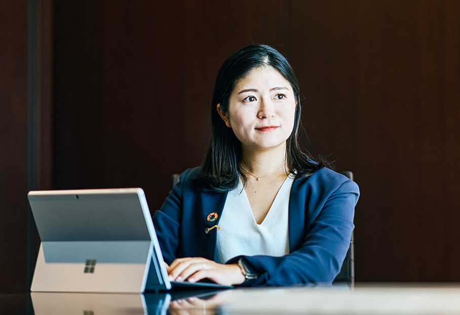 現在所属する金融市場営業第一部は、銀行や生保、ヘッジファンド等プロの機関投資家向けに、債券のセールスを担当する部署です。私は現在、主に日本国債を取扱い市場に大きな影響を及ぼす国内外の機関投資家へのセールス活動を担う金融法人一課と、国内投資家向けの外国債券セールスを担う外国債券営業課という、2つの課を兼務しています。日々、刻々と変化するマーケットの中で、お客様へ向けて、他社と差別化できるような情報提供、トレーディングストラテジーの提案などを行っています。