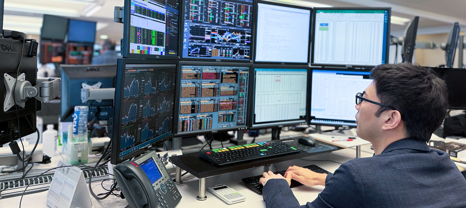 私は2016年に大和証券に入社し、エクイティ部デリバティブ・トレーディング課でディーラーとしてのキャリアをスタートしました。エクイティデリバティブとは株式に基づく金融派生商品で、代表的なものに、特定時期に株式の売買を行なう権利を取引するオプションなどがあります。私は大和証券の自己勘定で顧客である投資家と日本株デリバティブの相対取引を行っていました。具体的にはデリバティブ商品を売買したいという顧客に対して、取引条件や価格を提示し、必要に応じて現物株の売買とオプションを組み合わせたポジションを通じて顧客との取引から生じるリスクをヘッジします。このように市場を介さず投資家と直接取引することで市場に流動性を供給し、投資家の需要を満たすことも証券会社が果たしている役割のひとつです。東京で5年間の経験を積んだ後、2021年にアメリカ駐在の機会をいただき、現在はニューヨークで米国株を中心とした取引に向き合っています。