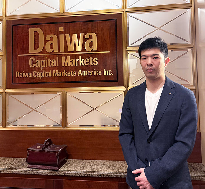 大和証券には若手社員の教育体制が整っており、早くから重要な役割を任され、活躍できる環境があります。実力や意欲をもった社員には積極的に挑戦する機会が与えられます。また上下関係に縛られず意見やアイデアを自由に発信できる風通しの良さも大和証券の魅力でしょう。私自身もエクイティ部に配属され、上司や先輩方にいろいろなことを教えてもらいました。大学時代に金融工学を学んだとはいえ、現場で鍛えられた先輩方からの実践的なアドバイスは、私の基礎になっています。入社5年でニューヨーク駐在にアサインされたのも、若手に経験を積ませ、育てようという親心だったと思います。多様性が大和証券の強みだとよく言われますが、実際に社内にいるとあまり意識することはありません。とりわけニューヨークでは多種多様なバックグラウンドを持つ人々と一緒に仕事をしているので、大和証券というフィールドでは、多様性は当たり前すぎる日常なのです。